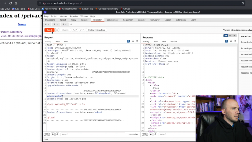 我们也许可以发送这个,并绕过它,只是在没有png的情况下,它确实工作。你甚至不需要png在那里,以便让这个特定的shell上传。你只需要php5。所以让我们继续前进,看看下一个。