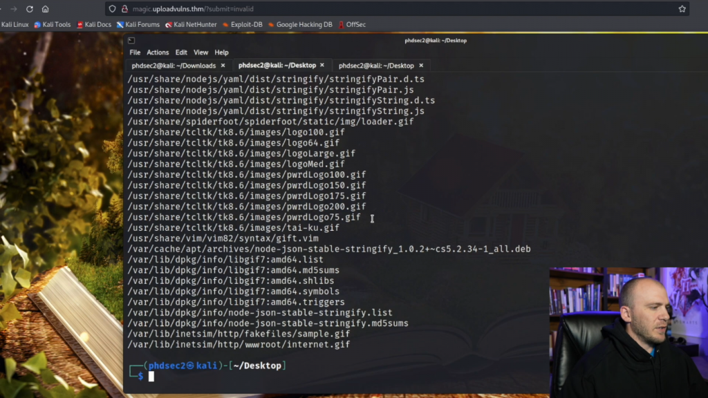 所以我们在这个问题上需要做的是使用神奇的字节,以便让我们的shell正确上传。它告诉你如何找到它们,你可以用它们做什么,然后我们应该拿到flag。所以让我们继续,打开名为魔术的那个,关闭它,让这个打开。然后它告诉我们魔法数字,选择一个文件,然后它说上传。所以让我们试着复制一个sample.png。所以sample.png,打开,上传。它说只有gif。所以我们需要抓取一个gif。所以我们可以直接输入locate gif,这不是我想要的,输入locate gif,我把这个完全打反了。