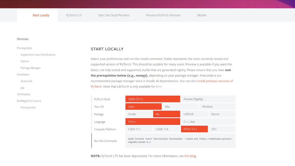 在PyTorch.org上,如果你需要更多信息,也有一个完整的安装网格。