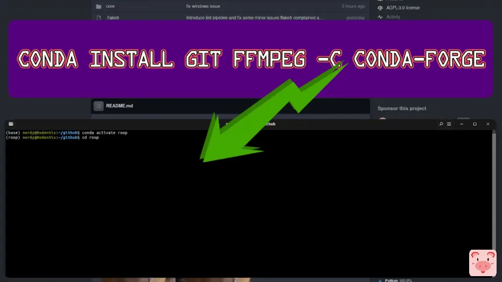 如果你还没有安装git和ffmpeg,那么现在是一个非常好的时机,来安装这些。你可以只输入conda install git ffmpeg -c conda-forge。