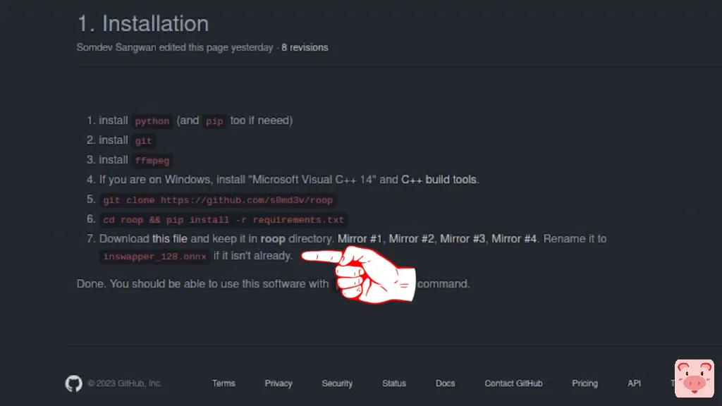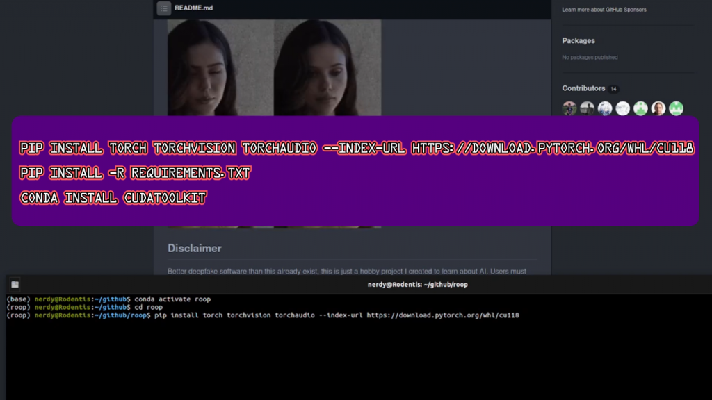 如果它没有被命名为inswappe_r128什么的,就把它重命名为这个名字。在所有这些下载完成后,现在是时候安装这个代码所需要的所有其他软件包了。我在这里用了三个命令,我知道这和文档中的略有不同,但基本上我先安装了torch,然后是requirements.txt,然后是cuda toolkit。
