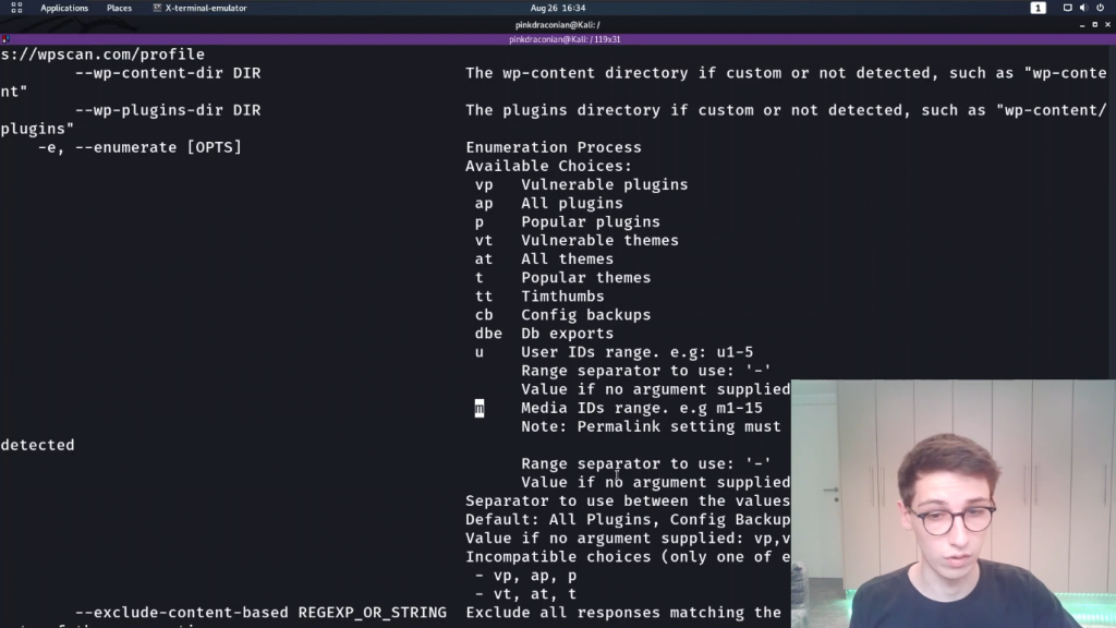 有关更多选项,请打开终端并键入“ wpscan --help”(如果从源代码构建了wpscan,则应在git存储库之外键入该命令)