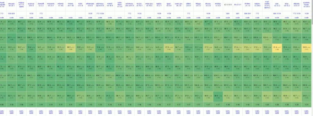 例如,在黄金标准框架基准测试中,它的排名比React本身高得多,甚至还击败了SolidJS。