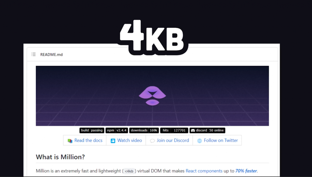 但今天有一些好消息。最近,一位名叫Aiden Bai的高中毕业生通过MillionJS将React的性能提高了70%,该框架提供了超级优化的虚拟DOM,并将原始虚拟DOM连接到散热器上,以避免引起任何问题。
