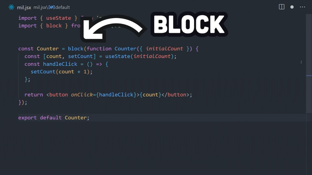 你只需要取一个现有的React组件,将其包装在这个块函数中,就可以创建一个高阶组件,它将阻塞虚拟DOM,并让Million神奇地接管。