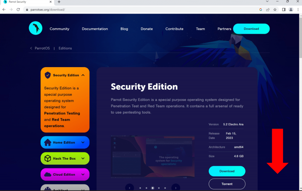 进入parrot的网站下载相关操作系统镜像