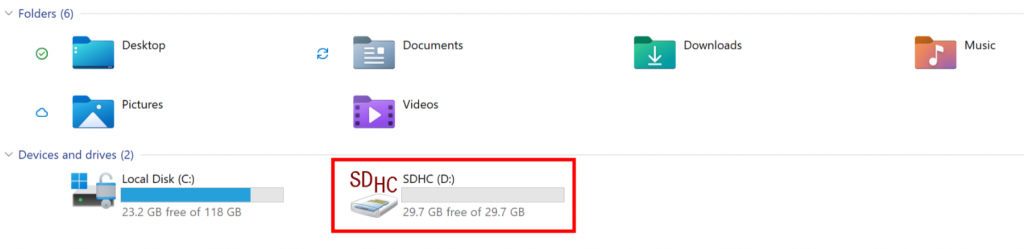 成功插入后,在电脑上可以看到相应的SD卡文件夹