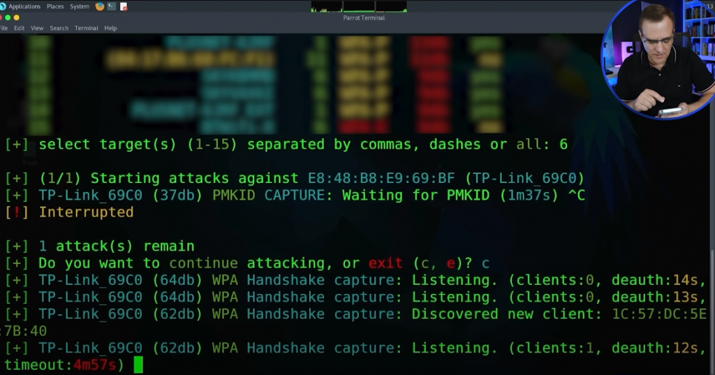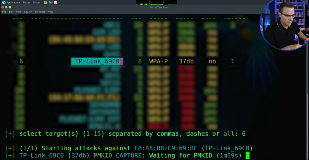 这里看到我们要针对的是TP-Link_69C0,家里的Wifi设备,因此要选择6回车
