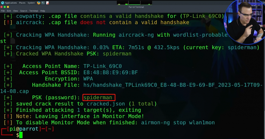 因此,本视频给了我们一个很好的忠告,Wifi密码一定不要使用弱口令或者自己手机号等信息,否则很容易被攻击者破解。