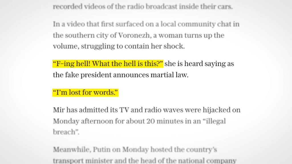但我们不必对这一事件挖得太深,因为俄罗斯国家媒体自己证实这确实发生了。塔斯社说,当局知道无线电频率被黑,但该地区的局势完全受到控制。他们还说,普京在一些电视网络上播放的紧急呼吁是黑客行为, 基本证实了电视接管确实发生。