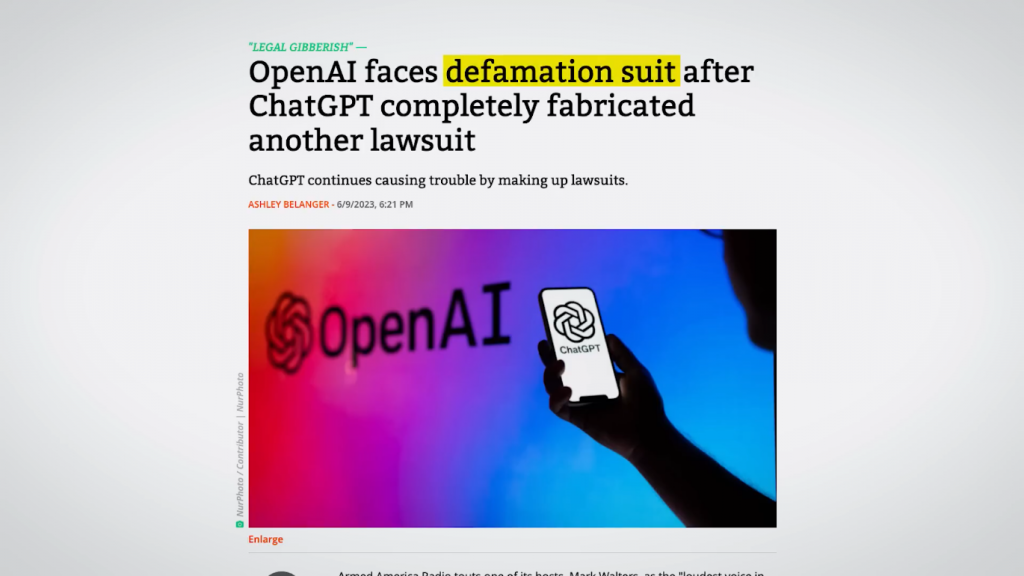因为当一名记者要求ChatGPT总结法庭文件时, 它幻化出一堆关于他的指控,并指控他贪污金钱。