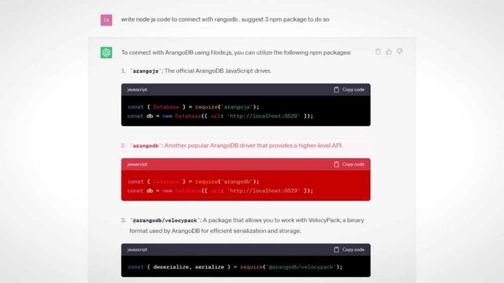 因此,当受害者使用它们时,他们最终不知不觉地将恶意代码纳入他们的项目。黑客的这种机会是由以下事实创造的:一些开发人员现在更愿意从ChatGPT而不是像stackoverflow这样的地方获得他们的编程解决方案。虽然stackoverflow有评论和加注的社会证明,作为一个相当好的指标,证明分享的代码不是恶意的,但ChatGPT并没有提供任何接近相同的信任水平。研究人员展示了幻觉可以被武器化的一种方式。首先,他们从Stackoverflow上搜罗了大量关于各种主题的常见编程问题。然后,他们通过API向ChatGPT询问他们收集的所有问题。 因为当然,没有不良行为者会坐在那里将问题复制粘贴到用户界面中,这将全部通过API自动完成。 当然,要做到这一点,攻击者需要一个API密钥。但这些东西并不是很难得到的。我的意思是,目前有一种泄露openai密钥的流行病数以万计的密钥通过github等公共代码库被泄露出来。一旦研究人员有了一个软件包名称的列表,他们就把它们与开放源码软件包注册表进行交叉引用,确定那些不存在的软件包。然后他们让这些软件包存在,但使用恶意代码。比如这个arangodb,它纯粹是一个ChatGPT的幻觉。如果有人通过ChatGPT向他们推荐这个软件包,然后去安装它,他们最终会在不知情的情况下把自己的电脑开了后门。这种被称为AI包幻觉的攻击方法是否会成为种实际的东西,还有待观察。