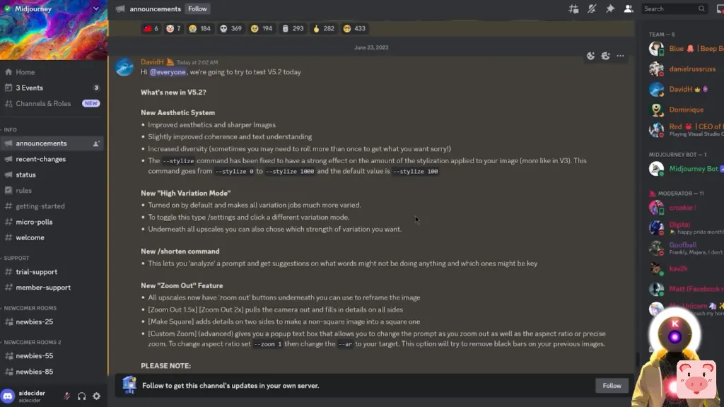 本期视频我们将分享Midjourney 5.2的最新功能更新,特别是创新的Outpainting功能,可以将您生成的AI图像扩展到更广阔的画布上,除此之外还上线了简化提示词(shorten)的功能,可以分析你的提示词并告诉你哪些提示词有作用,哪些在生成图片时并没有任何卵用,这样可以缩短我们的提示词,当然还有更多有趣的功能……