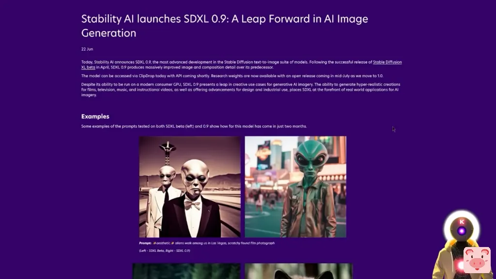 现在我做这个快速的视频是因为最初我不应该在今天做一个关于Midjourney的视频,因为在新的Midjourney模型发布的同一天,我们也有稳定的Stable Diffusion XL 0.9的发布。