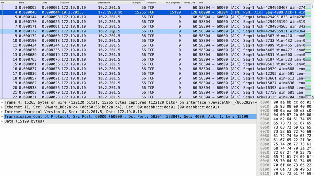 这是一个开始捕捉的简单方法。我们不担心有很多其他用户,但我们能够从这个客户的有利位置看到它在该服务器上遇到的问题。现在,我们需要对此持保留态度。因为我们在一个有问题的活动系统上安装Wireshark,我们要考虑到我们给这个客户端增加了一些负载,而且我们从客户端的数据包驱动角度进行了捕捉。因此,可能会有一些有趣的事情,我们看到在时间或内部感知的数据包大小在那个盒子里,但我们会在另一个视频中去了解这些细节。