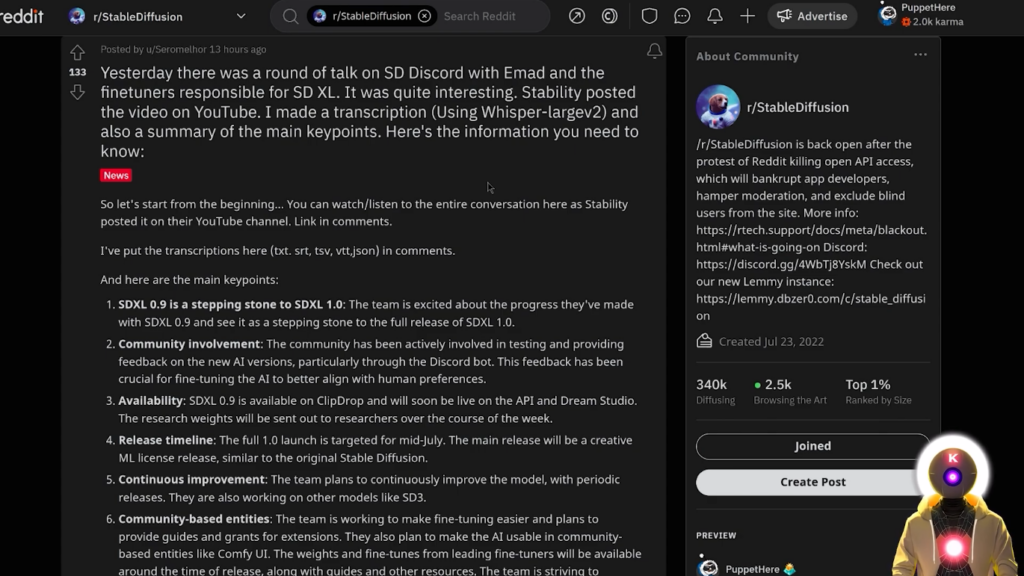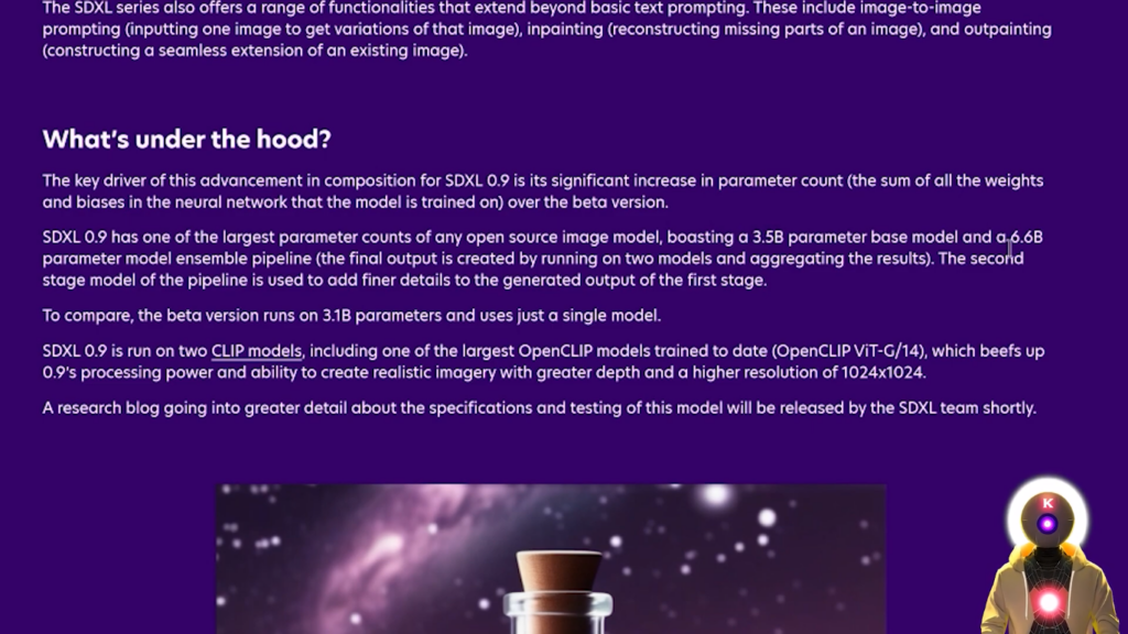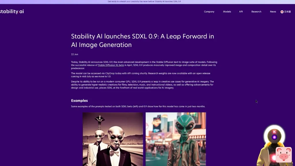 而且肯定有一些非常有趣的点,你需要知道。 现在,第一个关键点是稳定扩散0.9的事实,正如我之前所说,只是通往完整的稳定扩散XL 1.0的垫脚石。因此,正如我所说,技术上的稳定扩散XL模型仍在训练中,而完整的最终模型,实际的Stable Diffusion XL 1.0,将在7月中旬发布。所以基本上你今天看到的所有图片,都是由那个稳定扩散模型制作的,当这个模型完全出来后,可能会有更好的。