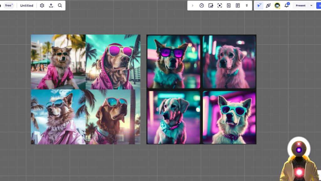 因为我的意思是,如果你把它们并排比较,虽然在这种情况下,我肯定更喜欢Midjourney,我们肯定会得到更多一点的审美高细节的感觉,我们得到一些非常漂亮和非常酷的图像。请记住,你在这里看到的一切,是免费生成的。