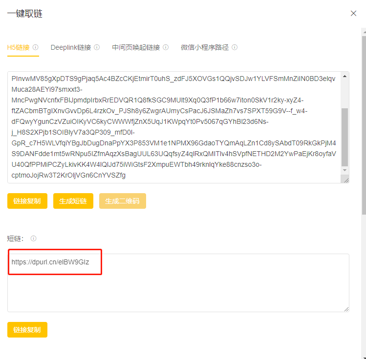 然后,如果你要推广给朋友,可以点击右侧的一键取链
