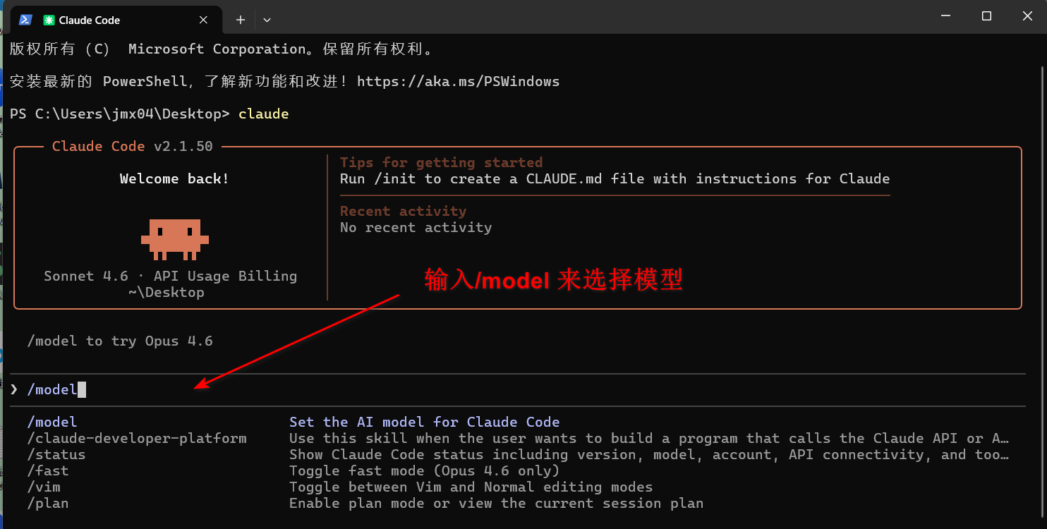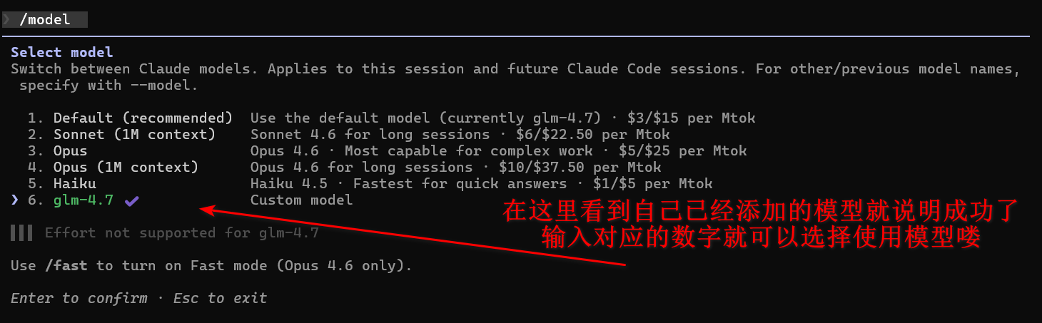 前面我们已经配置好 cladue code的josn文件 以及在CC Swtich中启用了我们配置好的第三方模型,下一步就是要开始在cladue code中选取并使用第三方模型啦