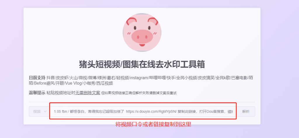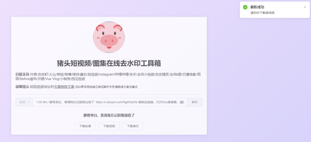 抖音/快手/b站/微视/微博/西瓜视频在线去水印神器