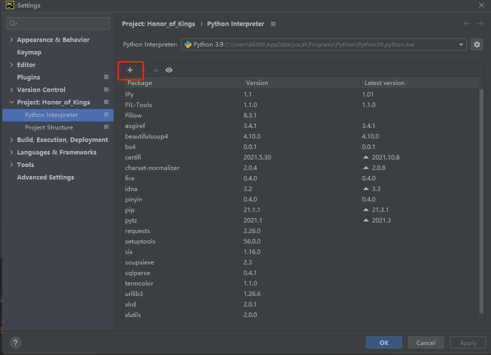 也可以在pycharm的settings>Interpreter中安装