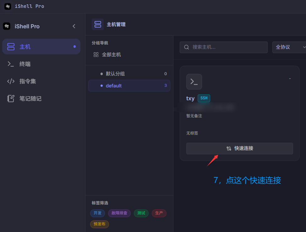 以ishellpro为例,也可以用其他的ssh工具,