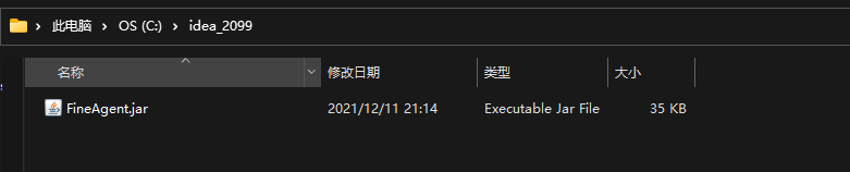 - 提前准备:提前在C盘的idea_2099目录下拷贝好FineAgent.jar文件