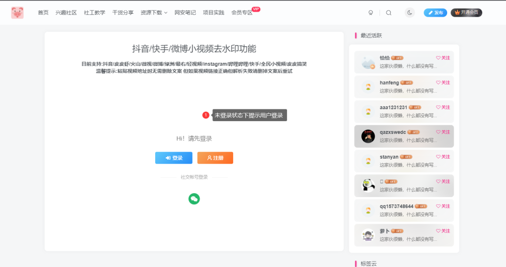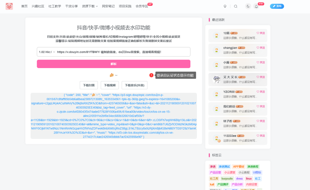 这里把之前群友分享的抖音等等去水印的页面拿过来,稍作修改便实现了下面的效果