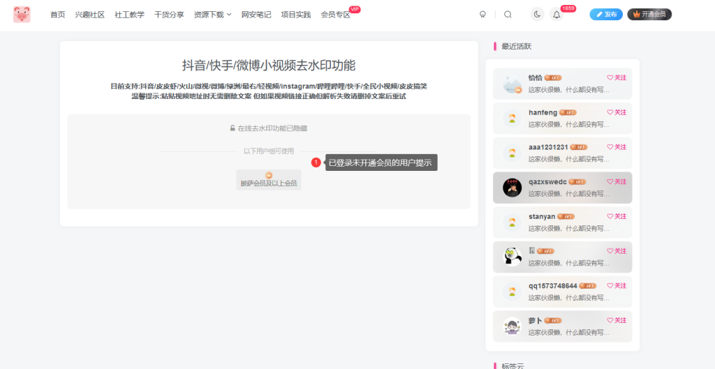 最后,对于登录且是LV1以上的用户,我们让这类用户可以使用去水印的功能