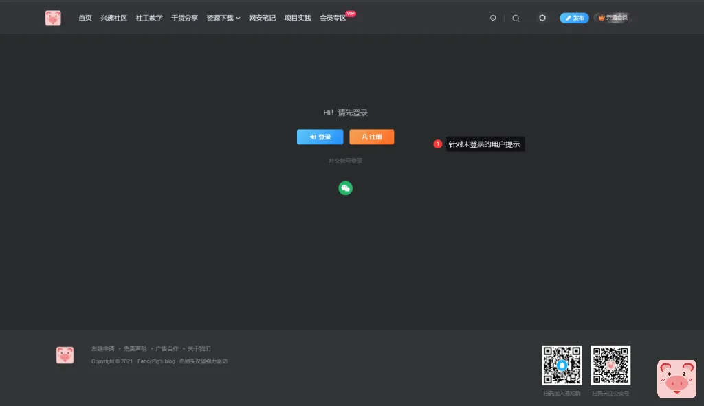 - 已登录但非VIP1以上的用户提示