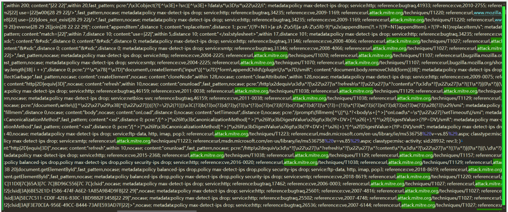 这里可以看到Snort3的规则里有reference,上千条都已经围绕着Attack攻击矩阵的策略,还是蛮香的!
