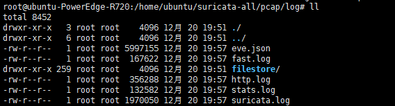 我们进入/home/ubuntu/suricata-all/pcap/log,可以看到有五个文件,一个文件夹,下面详细介绍每个的作用