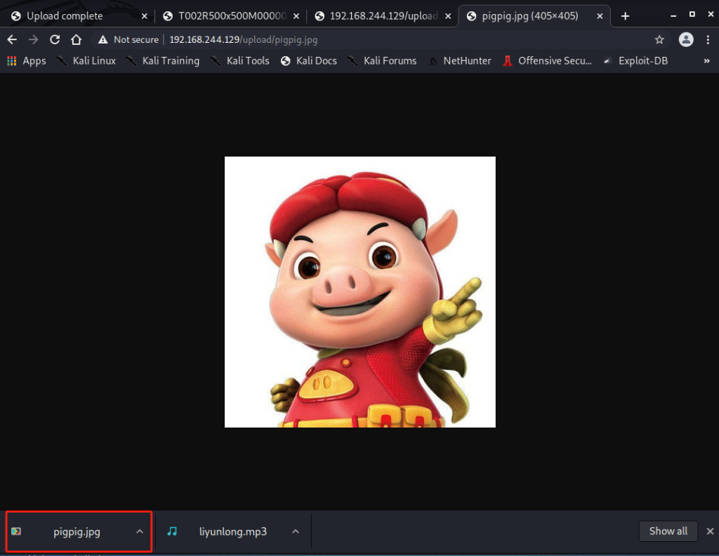 192.168.244.129(后面简称服务器)搭建了web服务,准备了一个简单的页面可以上传图片、下载图片 - kali虚拟机