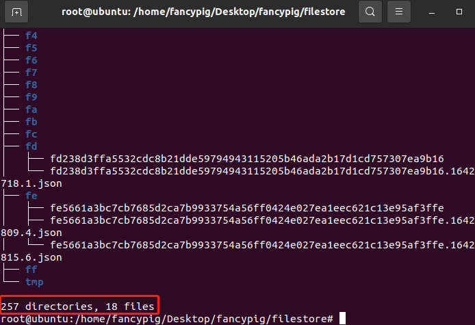 然后,我们去看下filestore文件夹,最笨的办法是用tree命令将全部文件都显示
