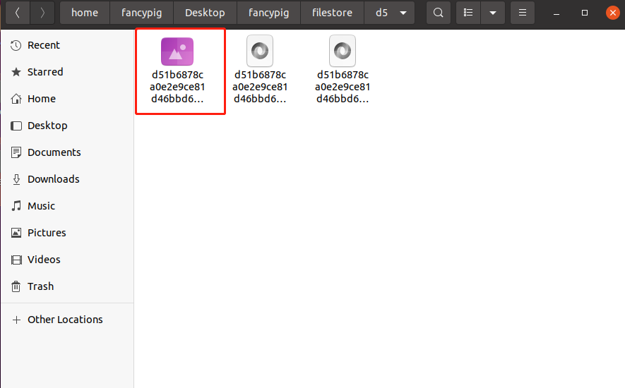进入/home/fancypig/Desktop/fancypig/filestore/d5目录下,我们看到在json文件旁边对应着还原的文件