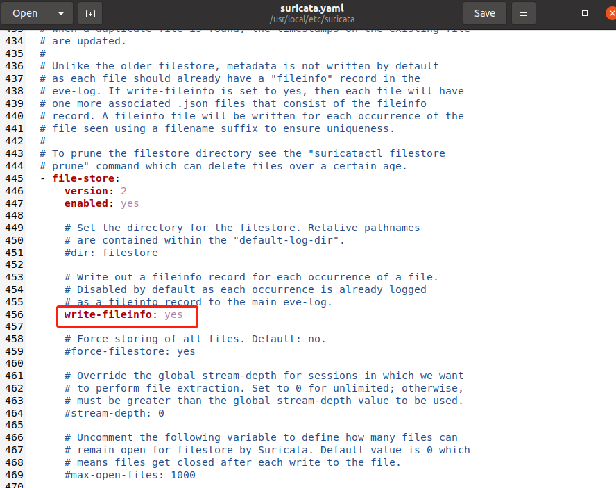 在/usr/local/etc/suricata/suricata.yaml中,约445行的位置