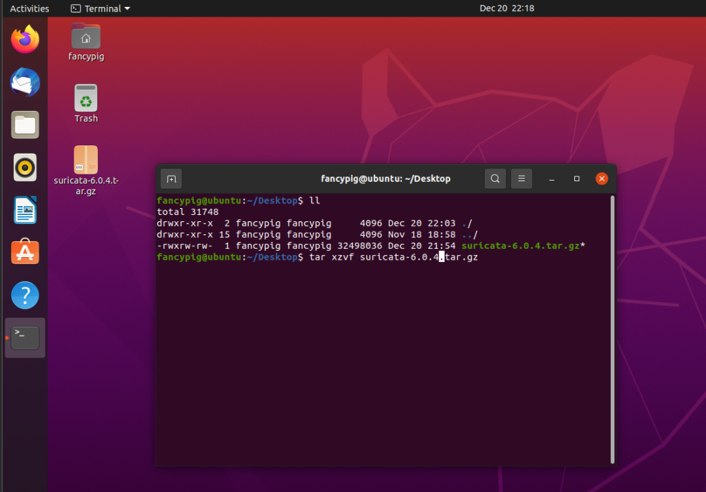 先将suricata-6.0.4.tar.gz 最新版文件下载到桌面上,解压缩相关文件