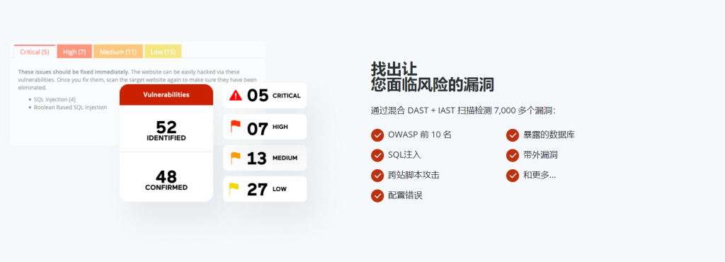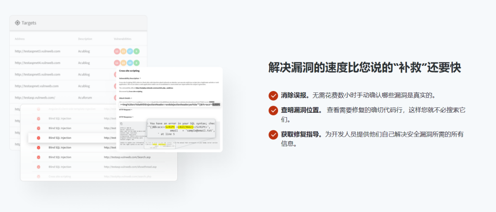 - Acunetix Premium 新发现的漏洞经过真实性验证,因此您知道哪些是真实的,而不是误报。这使您不必花费数百小时手动检查和确认所有漏洞。