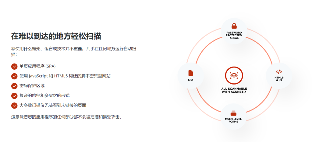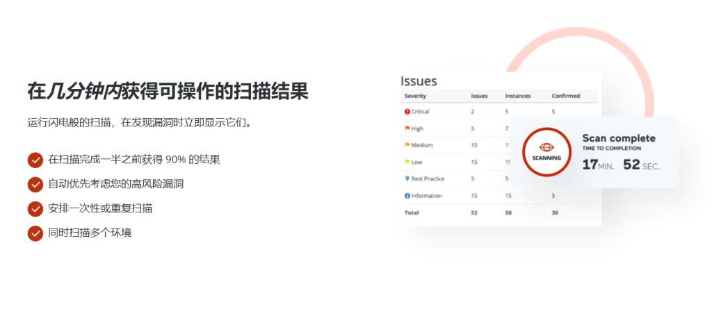 - Acunetix 扫描引擎由专门的团队开发,并使用 C++ 进行设计,以提高效率,使其成为市场上最快的解决方案之一。