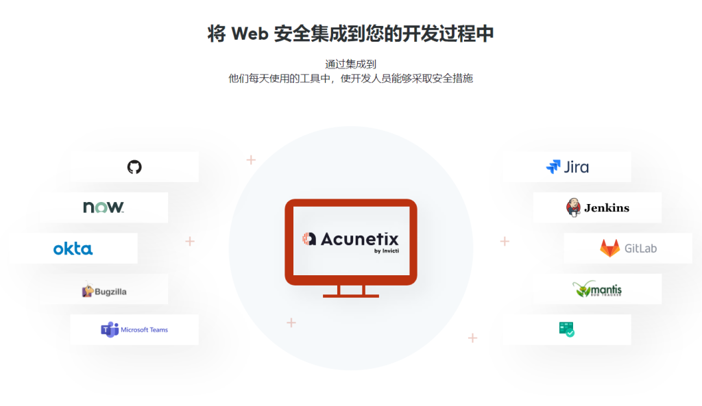 - 只需几分钟即可将 Acunetix 与您的环境集成。您可以与Jira、Jenkins、GitHub、GitLab、TFS、Bugzilla 和 Mantis等系统集成 。