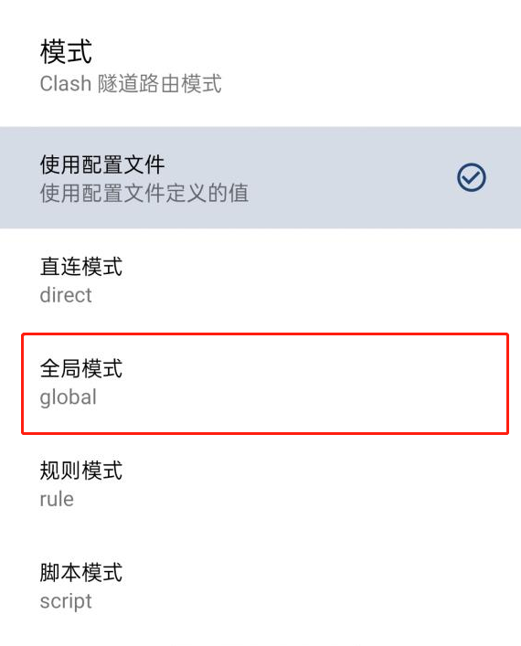 Clash 安卓版如何开启全局模式?作者:FancyPig | 发布时间:2021-12-25 12:17:03 | 更新时间:2021-12-30 17:47:34 前言 本教程仅用于学习、研究目的 图文教程 详细的配置教程参考 [postsbox post_id="222"] 我们这里主要补充如何开启全局模式 设置 → 覆写 → 模式
