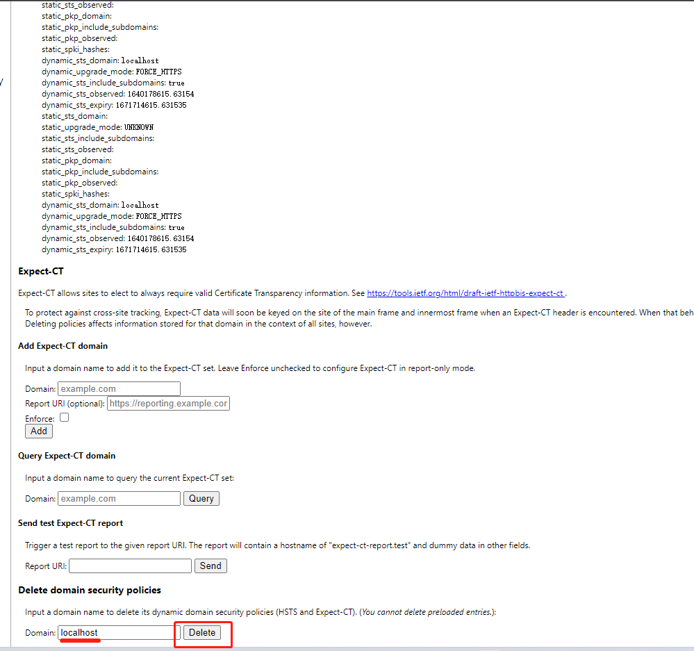 访问chrome://net-internals/#hsts