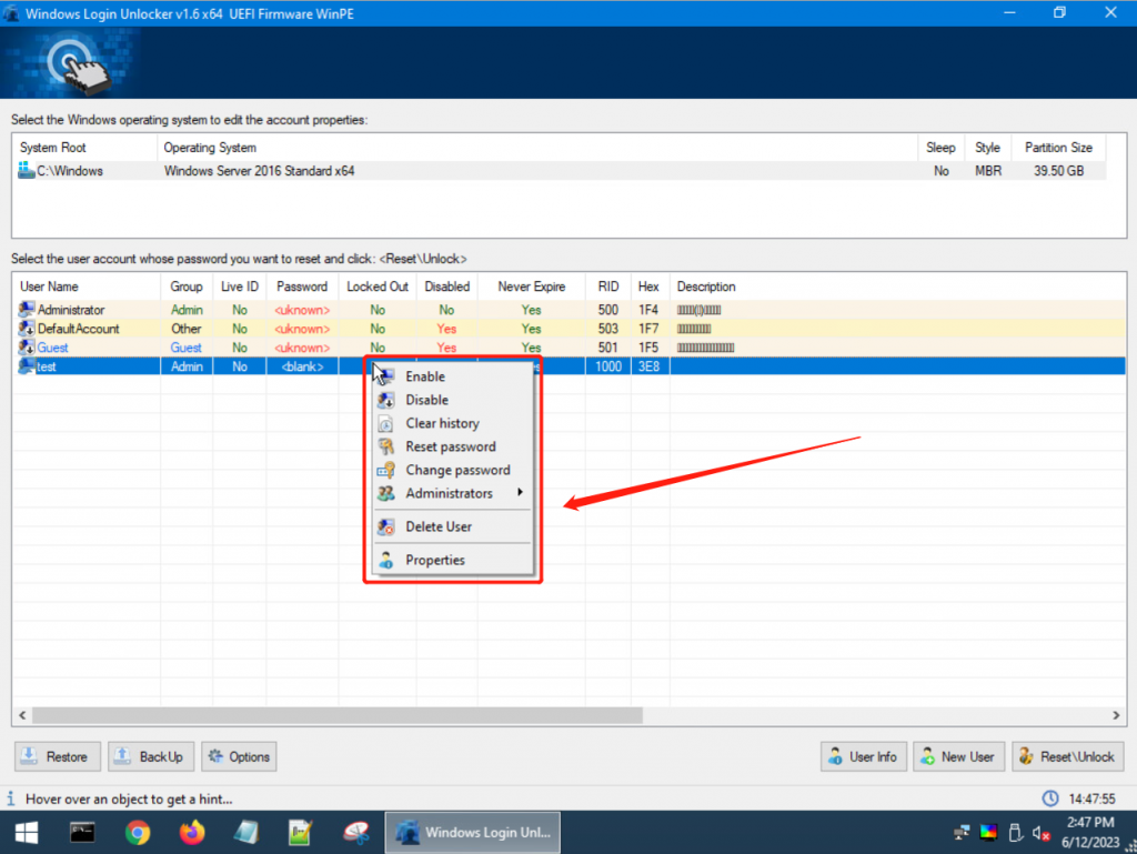 - 在原电脑用户基础上,再创建新的管理员账号,方便下次使用(也可以删除原电脑存在的账户信息,这将会导致机主无法再使用其原账号登录)