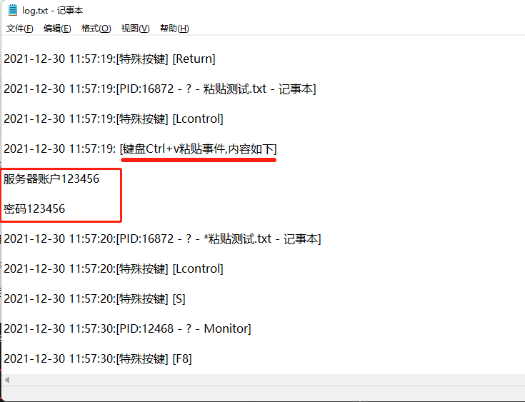 - 然后在Monitor文件夹下log.txt可以看到键盘记录以及粘贴内容