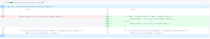 在 5.8.3 版本中,wordpress 已经修复了这个错误,比较提交更改可以在处理变量之前clean_query添加检查的函数中看到。$query['field']$query['terms']