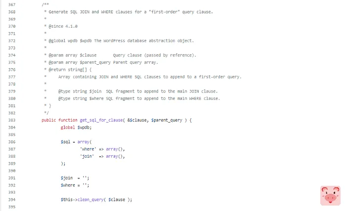 函数clean_query从 调用get_sql_for_clause。阅读该函数的代码会发现该函数的工作是为 SQL 查询中的条件创建子句,具体而言,它的工作是处理接收到的数据,将这些数据组合成 SQL 查询中的条件。将其返回给父函数。所以我们可以控制这个函数的返回数据,也就是说我们可以控制SQL查询和执行SQL注入。