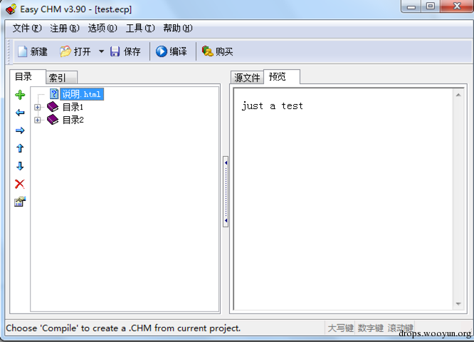 CHM的制作方法很多。有多款工具可以使用,这里就不在做详细的介绍了。本次测试使用了EasyCHM来制作CHM文件,使用起来非常简单。
