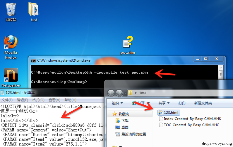 C:\Users\evi1cg\Desktop>hh -decompile test poc.chm #test 为当前目录的test文件夹